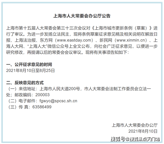 而我们也看到了,2021年8月10日 ,上海市第十五届人大常委会第三十三次会议对《上海市城市更新条例(草案)》进行了审议。