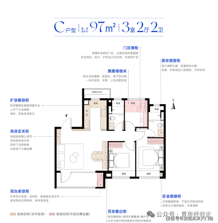 通过系统化的收纳设计,每个空间的储物能力都得到了显著提升。以60L容量的24寸行李箱为参照:97m²C户型整体交付柜体总容量约12m³,相当于足足200个行李箱。这种对空间的高效挖掘与利用,轻松解决了业主的储物难题。