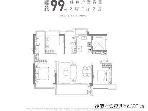 布局:餐客一体连通观景阳台,主卧带飘窗,1.5 卫设计兼顾实用性,得房率约 82%
