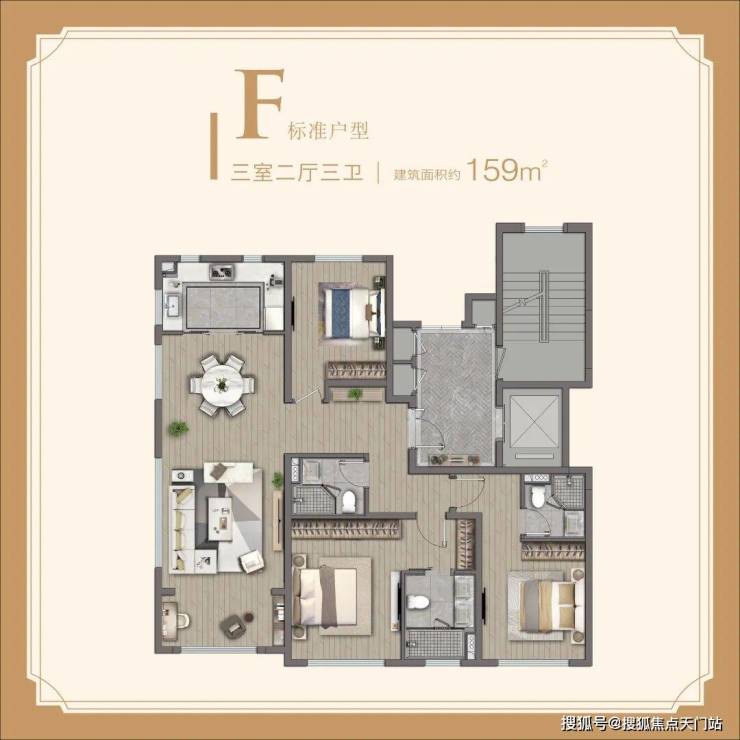 其次,所有户型室内层高都高达约3.15米,堪称“不做平方做立方”,多出的高度,即使装上空调、吊灯、地暖依旧非常舒适。