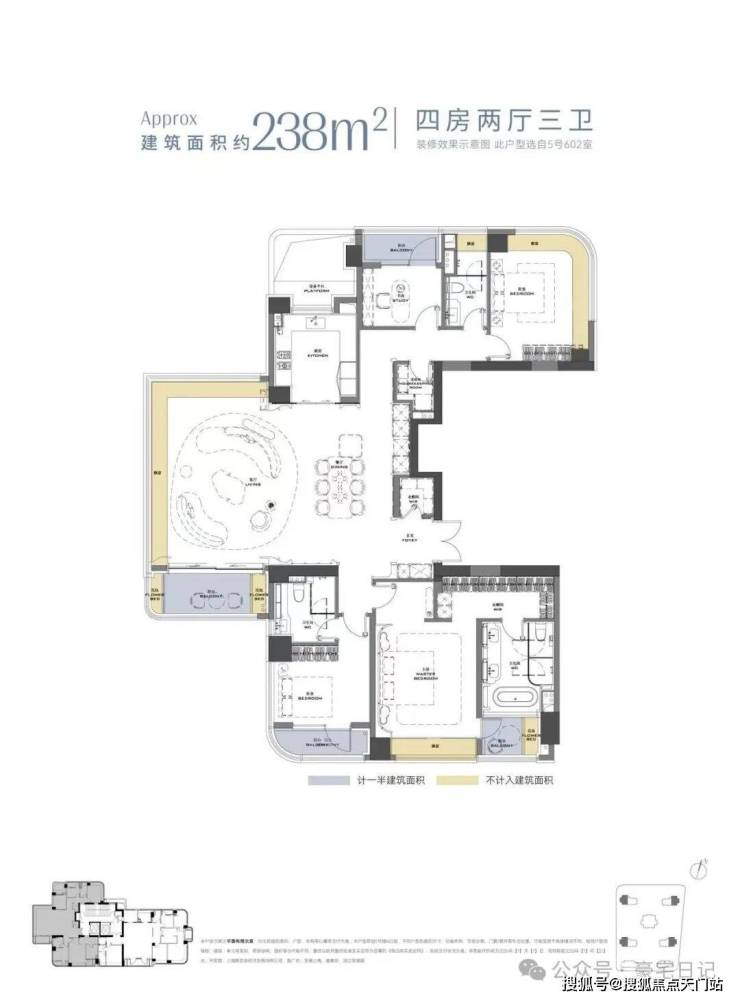 高实得率:约 88% 实得率,含私梯厅、拓展空间,比同面积多享一间房