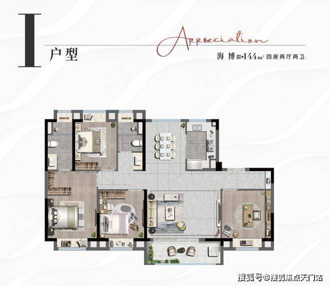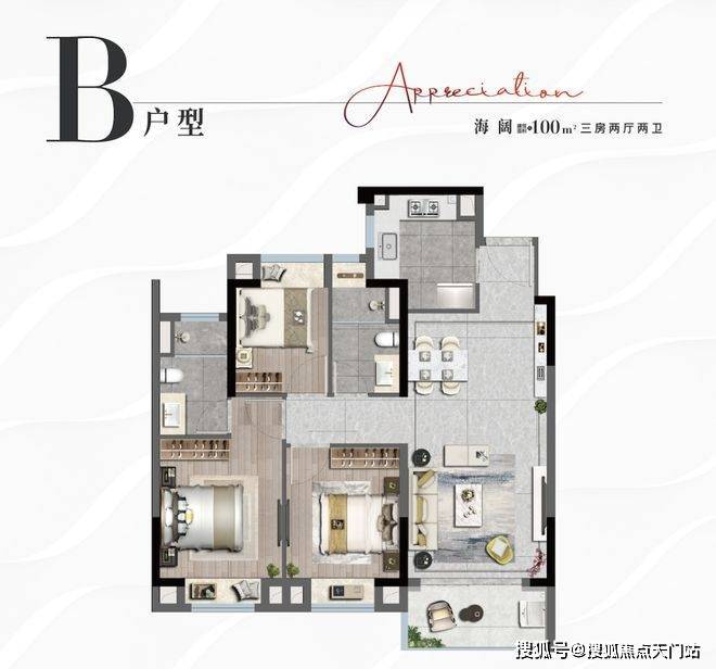100㎡以上户型双卫已成标配,144㎡以上多见三卫。