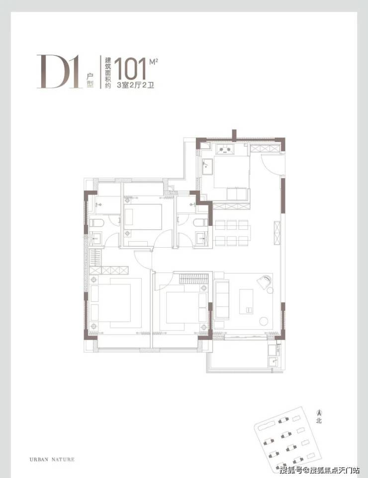 从户型设计看,建面约100、101㎡三房 三开间朝南 ,动静分区、全卧飘窗,主卧就寝区→衣帽间→卫浴间层层递进,仪式感满满。