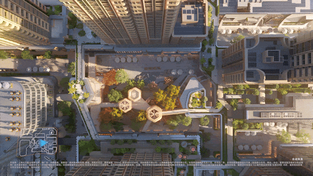 你从高线公园俯瞰,三个“树屋中心商业”穿插其中,整个景观很立体,层次感很强。