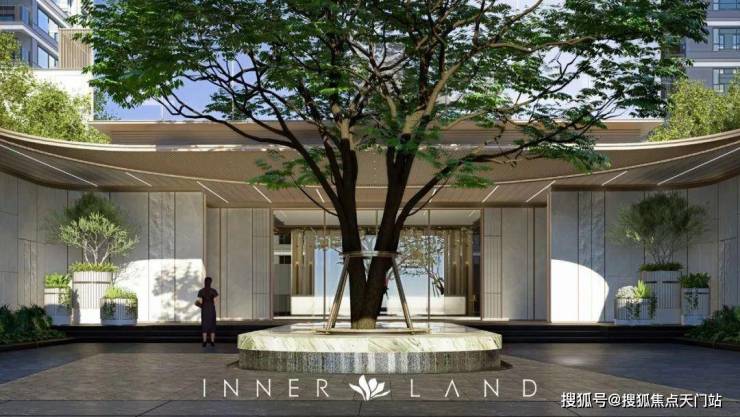 约40米奢阔归家门庭,历经近30版建筑方案反复修改,60版细节比例研究精筑,奢选精致石材搭配金铝板,营造归家雅序。