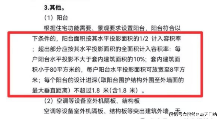 ① 新政放开,单户阳台投影面积不大于8平米的限制;