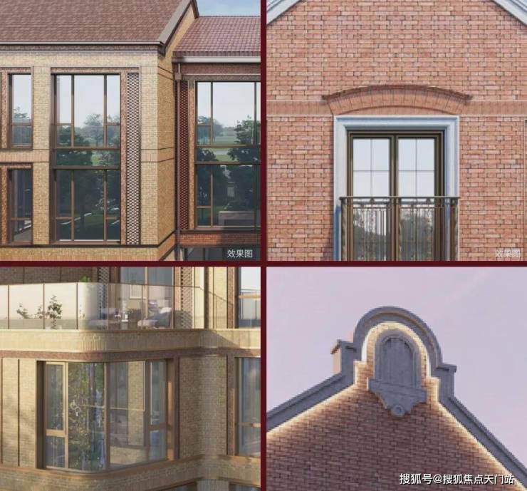 例如,在社区入户,目前已经完美呈现出来的,有强烈视觉冲击的立面大量的红砖、红洞石及大面积的落地弧形玻璃搭配的相得益彰,整个门头既有厚重的历史感,又不失极简主义的现代美。
