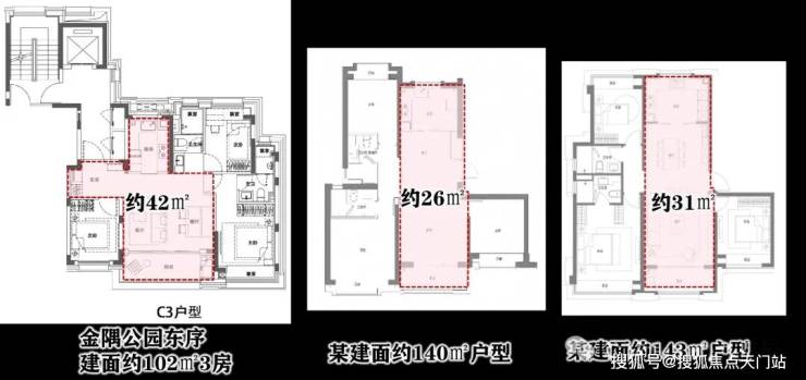 1、王炸空间,超大面宽奢阔尺度,建面约102㎡三房