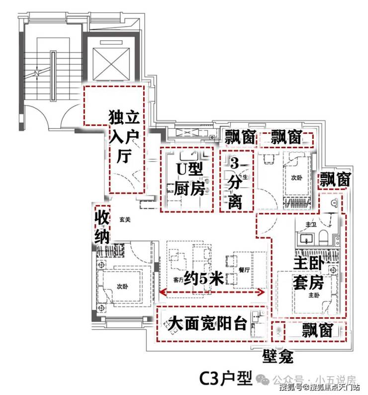 项目建面约102㎡户型打造了接近 豪宅大平层的居住体验!