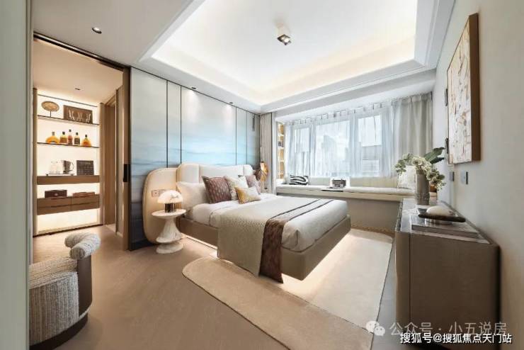 · 主卧套房:位于户型最内侧,私密性强。可轻松容纳1.8米大床与衣柜,搭配飘窗,增加采光与休闲空间,赋予主人充分的尊贵感。
