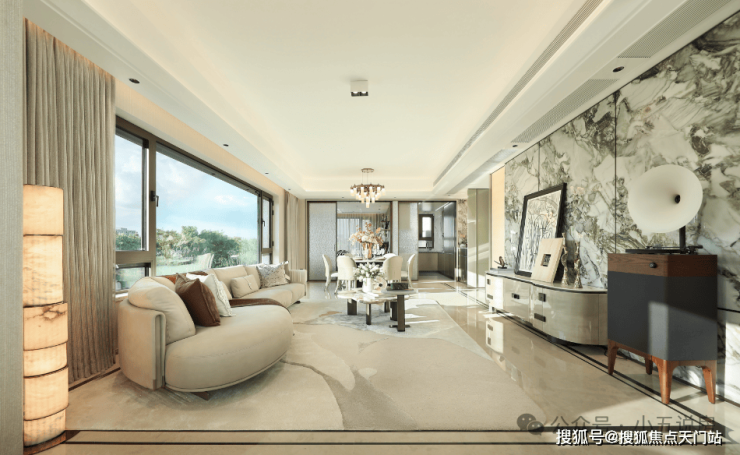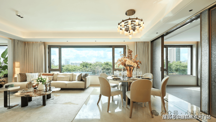目现在样板间已开放,可以亲身感受一下 超大横厅带来的 尺度震撼感。