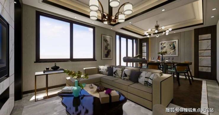 从产品形态上看,建邦国宸府打造的是金山新城极为稀缺的墅居产品,由高层+叠墅组成,建筑风格为现代中式滨海风格。其透露出的中式意境和构图美学我们可以从景观绿化一窥端倪: