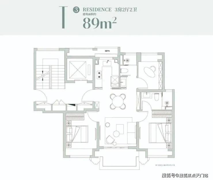 经典三房(约89㎡):