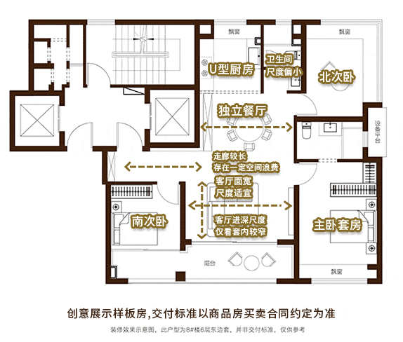 约6.4米大横厅。餐厅+客厅,再配上南向阳台,形成约37㎡的开阔区域。