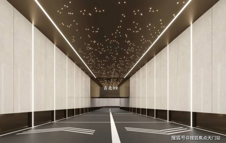 同级都在卷公区,古北99公区也十分硬核, 宽境社区大门、四季景观,酒店式入户大 堂/地库大堂、艺术星空顶车库入口...该有的仪式感一个都不落。