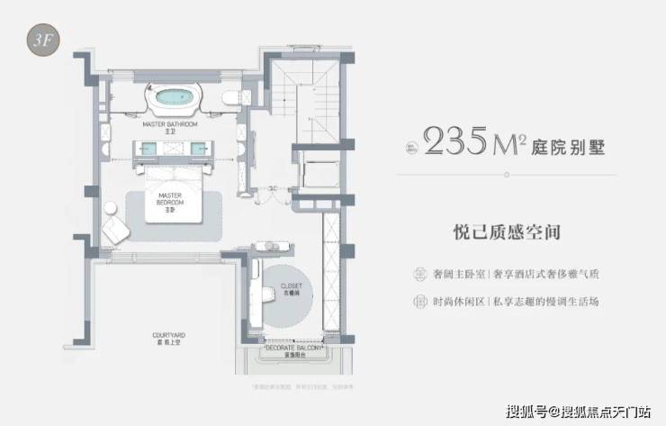 以建面约235㎡的庭院别墅样板房为例,户型附赠地下室、庭院、露台、阁楼空间,附赠面积达到户型总建面的60%左右,市场上少之又少!