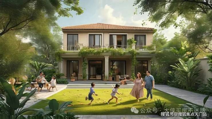 如果说交通是硬实力,那南侧约500米原生水岸+20米宽生态河道,就是项目“凡尔赛”的资本。180°河景不是噱头,清晨推窗见白鹭掠过水面,傍晚在私家庭院烧烤时,风里都带着水杉林的清新。更绝的是设计师的“立体纵享”思维:联排别墅通过跨层联动设计,让地下室也能借到庭院采光,小孩在草坪奔跑的身影,老人修剪花草的闲适,透过落地窗成了家里流动的风景画。这种“有天有地”的奢侈,在市区大平层里可复制不来。