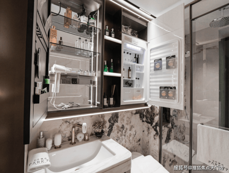 主卫方面,保利也是始终贯彻着“女性友好”:小户型配置科勒美颜三件套,大户型则升级为五件套,包括了冲牙器、除氯等等,美妆冰箱也同样是标配。