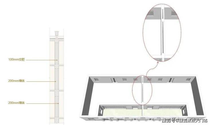 与其他风貌共用一堵分户墙不同的是,忻园的风貌别墅采用双层分户墙做法,每户之间没有共用墙。200mm厚度的墙体,中间还设置了100mm空腔,避免邻里的相互影响,带来舒适静谧的居住感受。