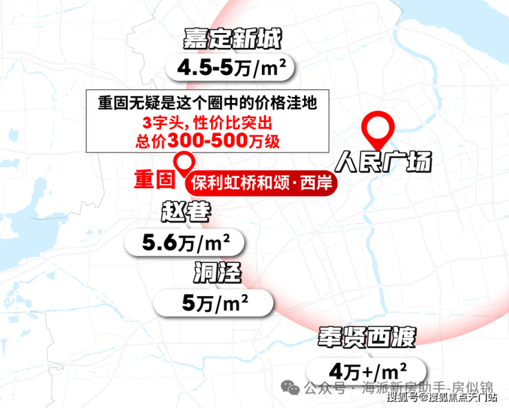 若以市中心为圆心,重固与赵巷、洞泾处于同一半径范围内,但后者房价已达5-5.6万/㎡,而重固仅3字头