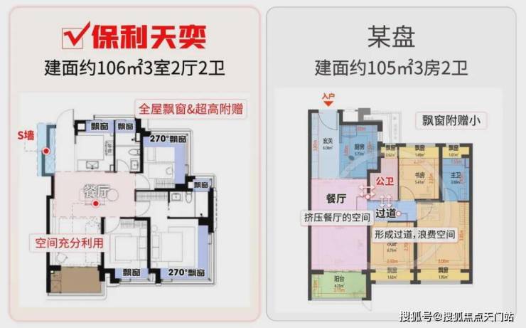 常规项目只有三个卧室有飘窗,而保利天奕做到“全屋飘窗”。不仅厕所、厨房间都有飘窗,边户还做到双约270°飘窗。