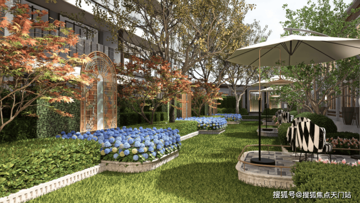 海派生活轴的端点是邻里交互的 艺术花园 ,是业主茶余饭后散步的好去处。