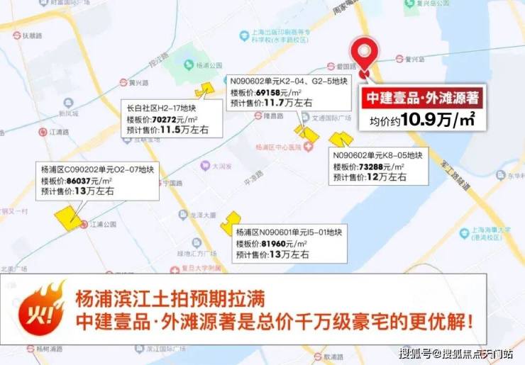 杨浦滨江核心地段项目价格有望突破13万+/㎡,即使离江比较远长白社区项目预计售价也在11.5万+/㎡。