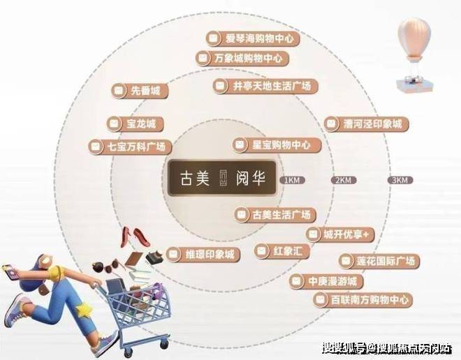 项目周边3KM范围内云集: 有上海万象城、爱琴海购物中心、漕河泾印象城、七宝领展广场(原七宝万科)、七宝宝龙城等多个大型购物中心商圈;以及九星自身约130万方的商业综合体(规划中),总体量超400万方,业主可开启一站式高品质购物生活。