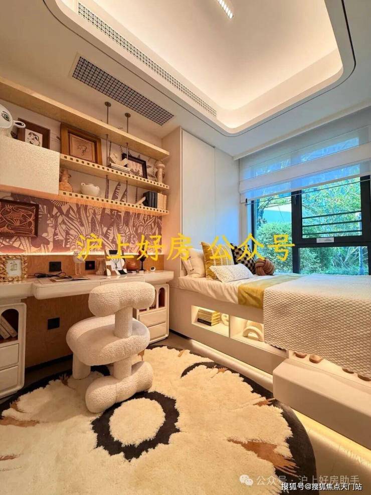 主卧270°转角飘窗,是“情绪自留地”:垫个软垫成阅读角,甚至能打造成迷你储物间,换季衣物收得整整齐齐。