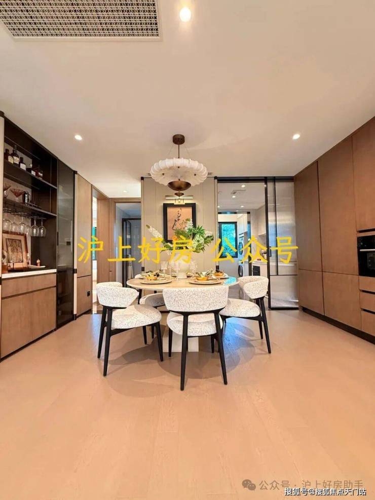 可开合的厨房像“场景切换器”:闭合挡油烟,打开后餐桌与岛台相连,妈妈做饭时能照看孩子,朋友聚会时可边聊边备菜,烟火气里满是互动暖意。