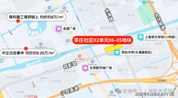 教育方面:地块周边拥有从幼儿园到中学的全龄段优质教育资源。莘光学校、明星学校、莘松中学等环绕,莘松中学就在地块南侧。
