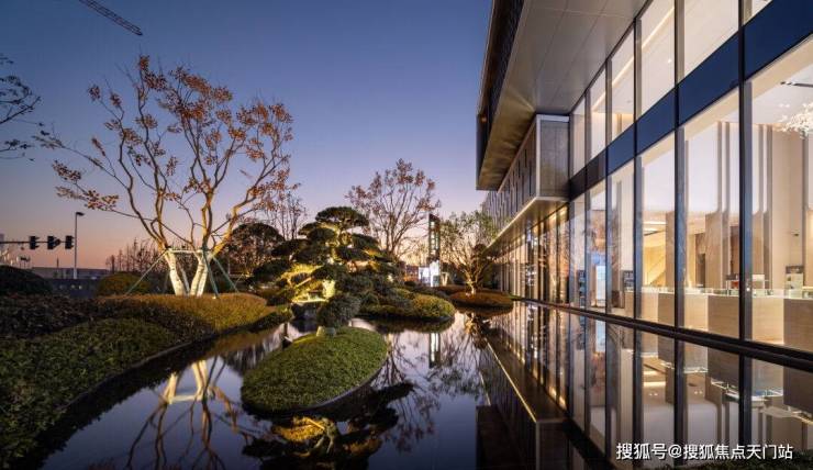 以多种名贵植物的阵列形式,打造星级酒店式入户门仪,同时高层及洋房单元入口更设有约0.9m的高景墙,沉稳质感,营造摩登奢雅的尊崇体验。