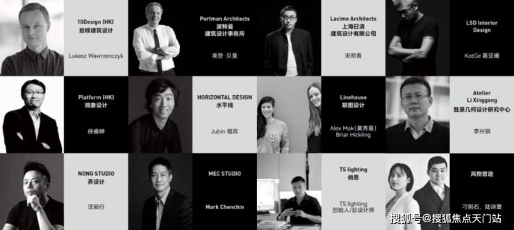 包括外滩华尔道夫酒店的缔造者波特曼建筑设计事务所、来自中国香港的先锋设计机构10Design和Platform,参与设计上海新天地的日清建筑设计,擅长室内空间设计的LSD Interior Design、水平线、Linehouse、NONG STUDIO以及设计外滩建筑群灯光照明的TS lighting等。