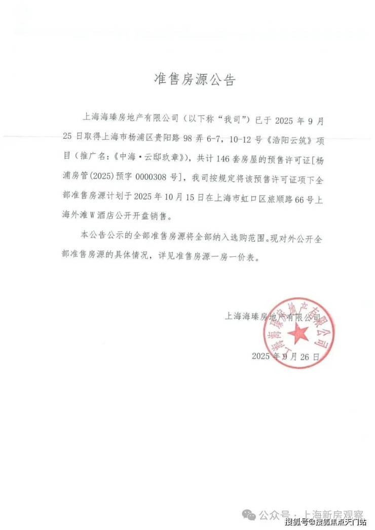 最新消息!杨浦滨江热盘「中海·云邸玖章」至今已三开三罄!南区压轴楼王32套约148㎡4房;11月1日已过会均价12.6万/㎡!售楼处线上火热预约中!