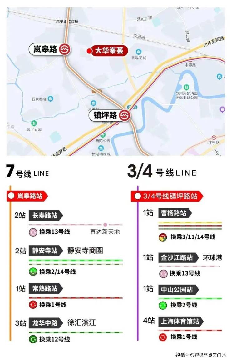 交通出行便捷,轨交方面有3、4、7号线三条轨交在侧,距离7号线岚皋路站直线距离仅约500米,步行即可到达,1站可换乘3/4号线,4站即达静安寺,6站可达人民广场。自驾方面,距离内环高架直线距离约900米,可畅达全市各大节点。