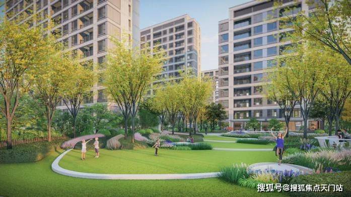 以 公园+花园的双园社区、品质归家入口、特色阳光草坪、双会客系统、主题儿童乐园、健身系统这六大功能价值为主,并且融合由三条不同主题的林荫步道和三个圆形景观节点组成的 “绿林项链”全区漫步系统,共同构成全区“6+1”森O₂家园系统。