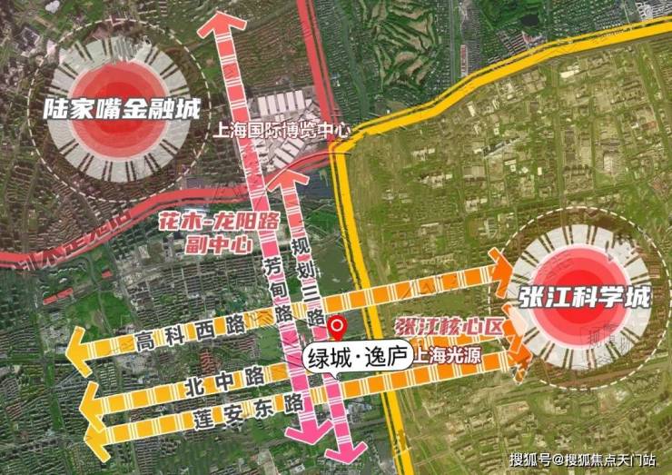 同时项目南侧的 北中路和莲安路 都可以通达东西(联通成山路直达世博),向西直通上海光源所在的张江核心区。