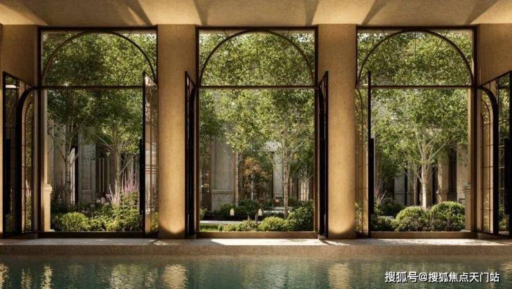 NO.8 花园泳池 波光潋滟处,拱形门窗外花影摇曳,一池春水将四季芳菲溶成流动的油画。