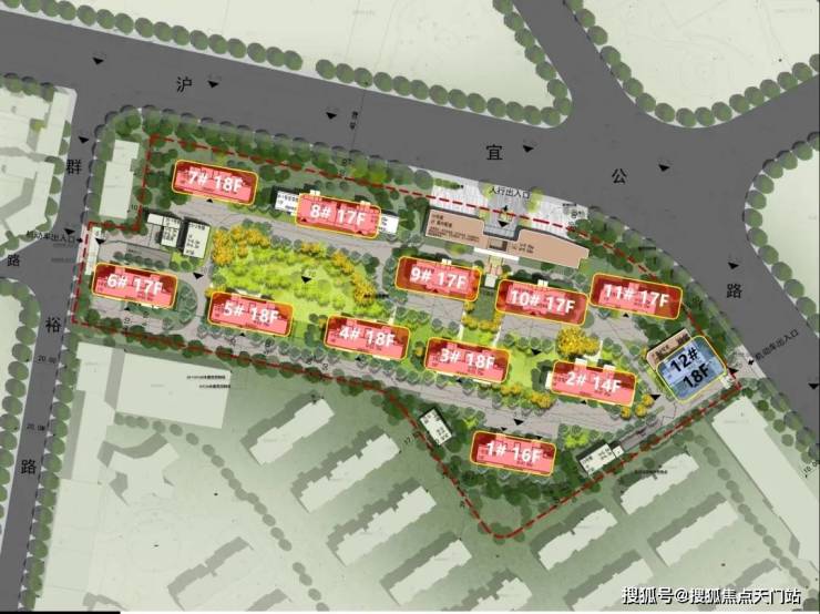 项目四至服务:东至沪宜公路,西至群裕路,南至基地边界,北至沪宜公路。根据项目规划设计方案,拟建12幢14-18F住宅(含保障房)以及其他配套用房等建筑,规划共计702户。
