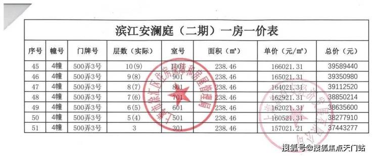 附一房一价表