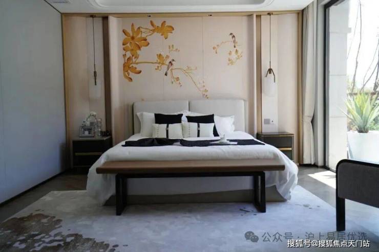 通过优化后的“L型”空间排布,实现了三面有园林环绕,前庭空间尺度非常大,一进门就是约10.2米的大横厅,气派十足,采光也做到极致,日常起居极为从容舒适。
