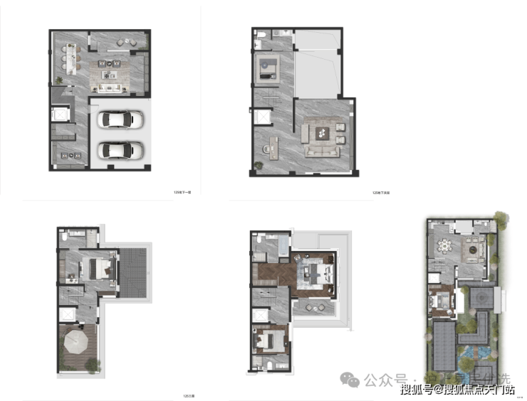 约125㎡的明星户型做到了5套房设计,地下一层、地上三层的空间形态,将空间尺度无限放大。
