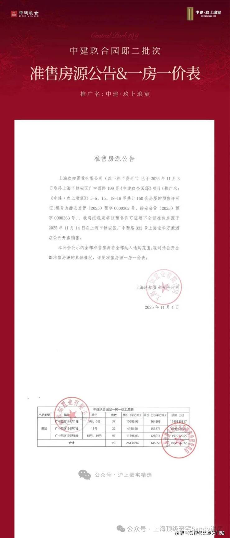 单价22.6万/㎡!静安新房天花板【中建玖上琅宸】过会均价14.685万/㎡,二批次少量房源直接落位,预约可看!