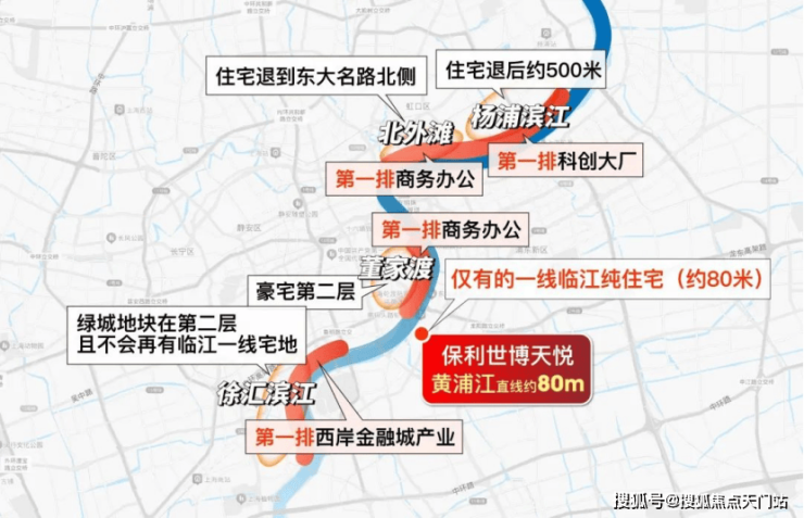 浦东滨江核心段(杨浦大桥-徐浦大桥)共规划12幅一线滨江住宅用地,其中9个已是现状小区,1个即将交房,2个在售中(保利世博天悦是其一)。