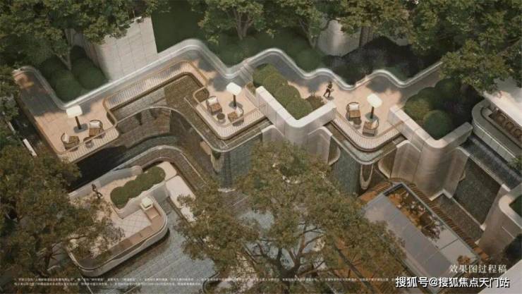 保利·珺园的社区景观以"两环二轴"为核心布局,带来上海罕见双下沉式庭院,并以东方庄园的世界表达为内核。