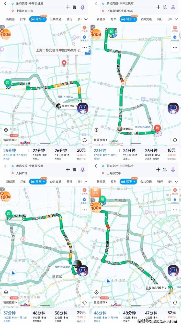 可以看到,不管是去市区的人民广场、静安寺;还是去市区北部一些大型的高端商业,例如中海环宇城、大宁久光中心等,都是上了中环一脚油门的事情。