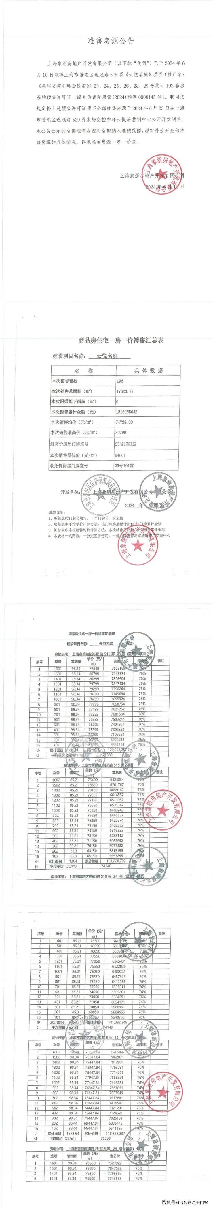 最新一房一价表: