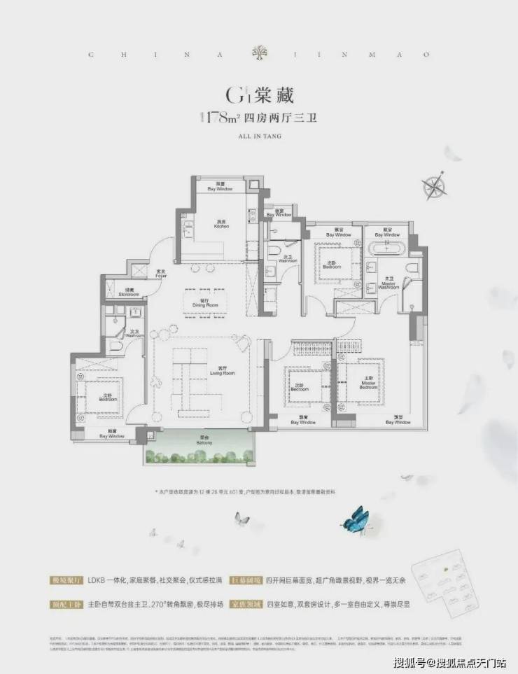 建面约117㎡3房2厅2卫,做到了3+1开间朝南+5个飘窗+主卧套房设计+270°转角飘窗,所有的尺度都有进一步提升。