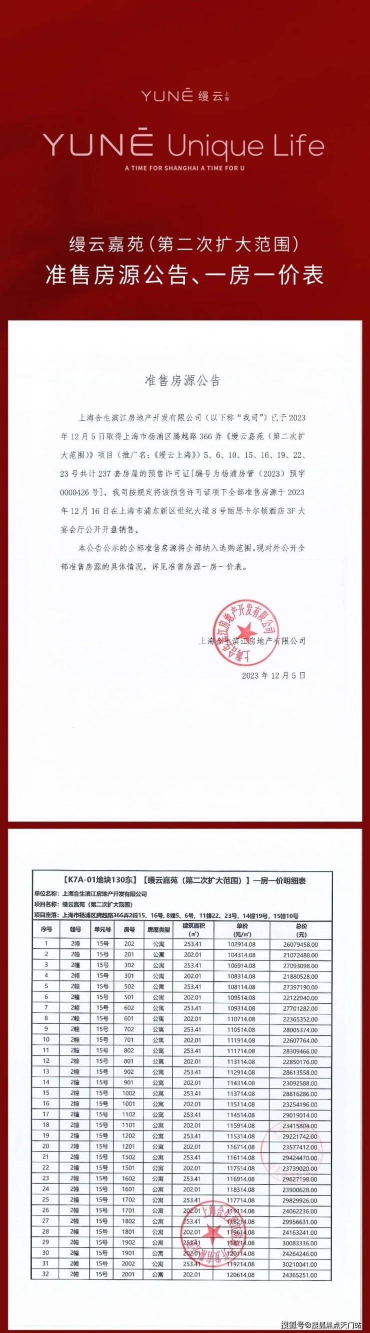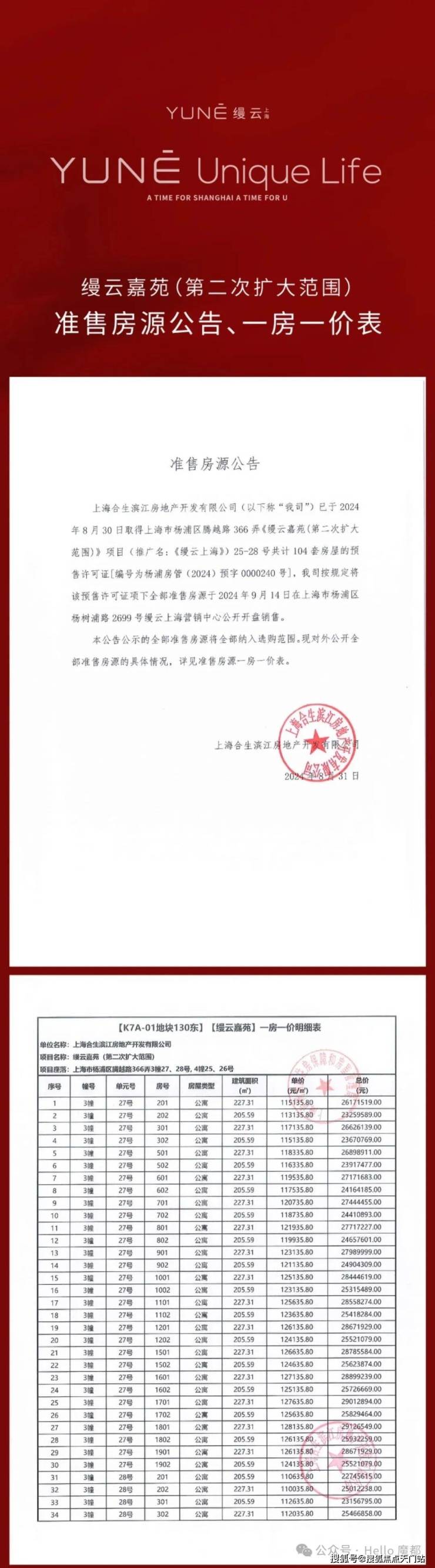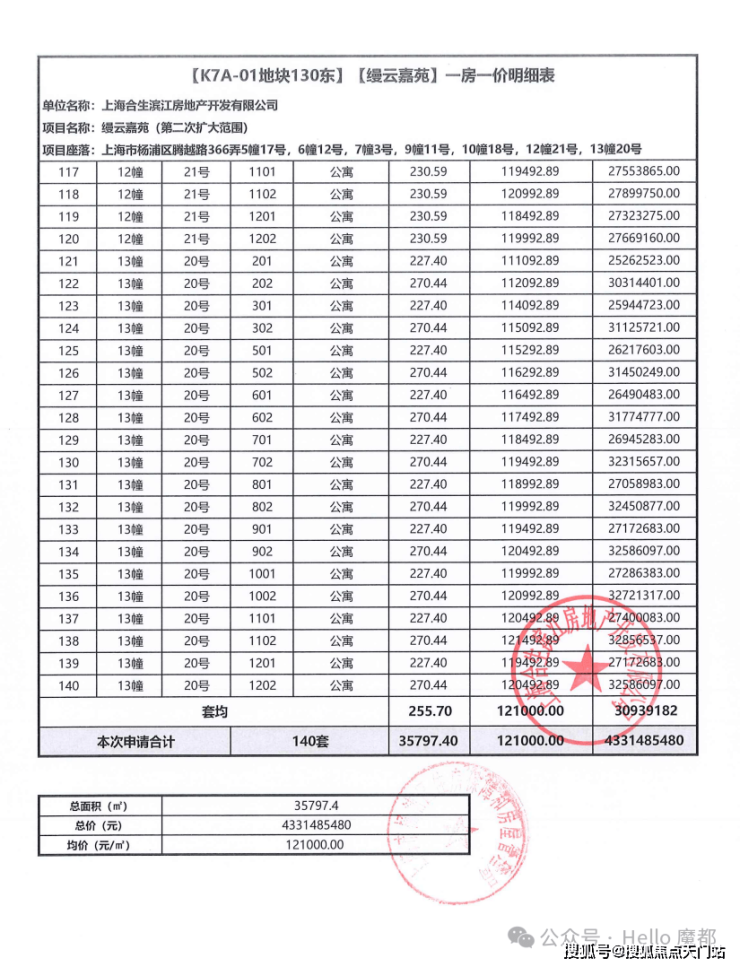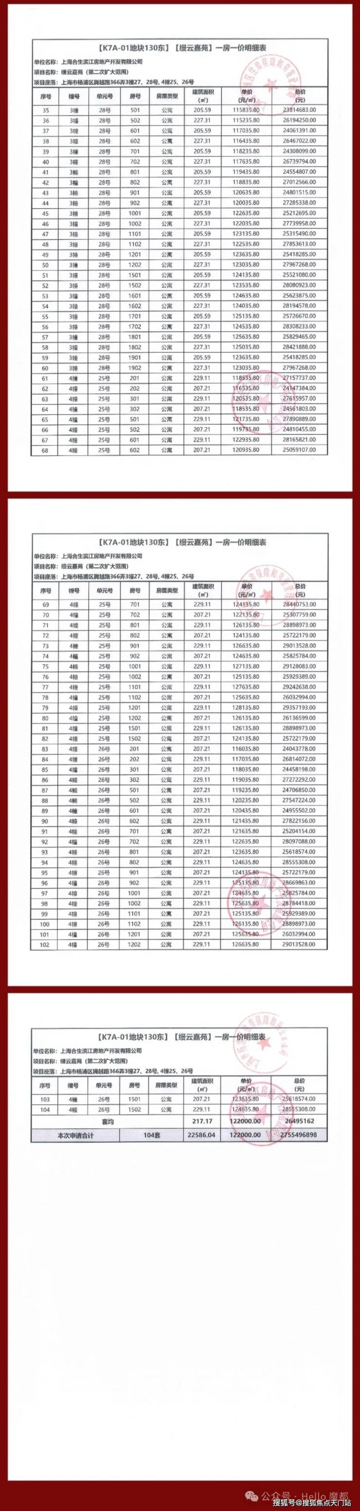 【本批一房一价表】