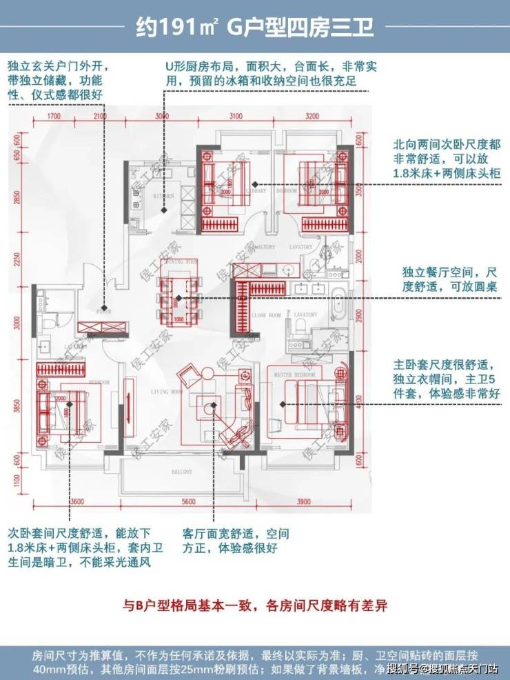 综合评价:与B户型格局基本一致,各房间尺度略有差异